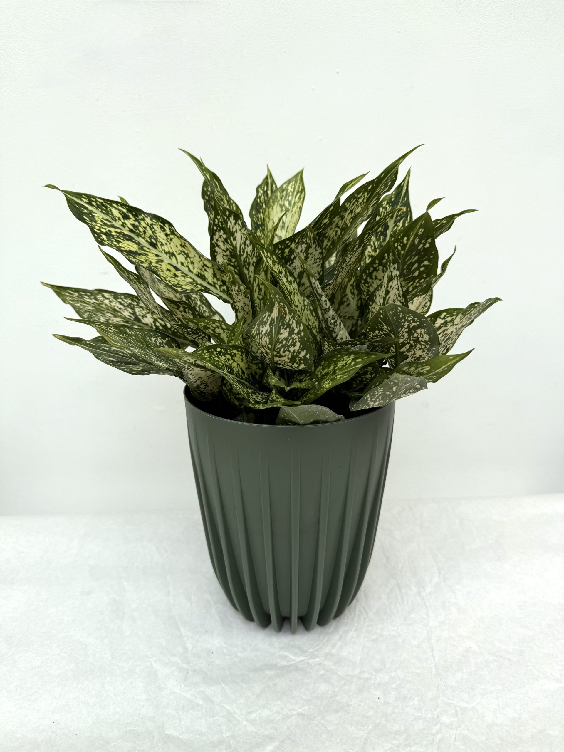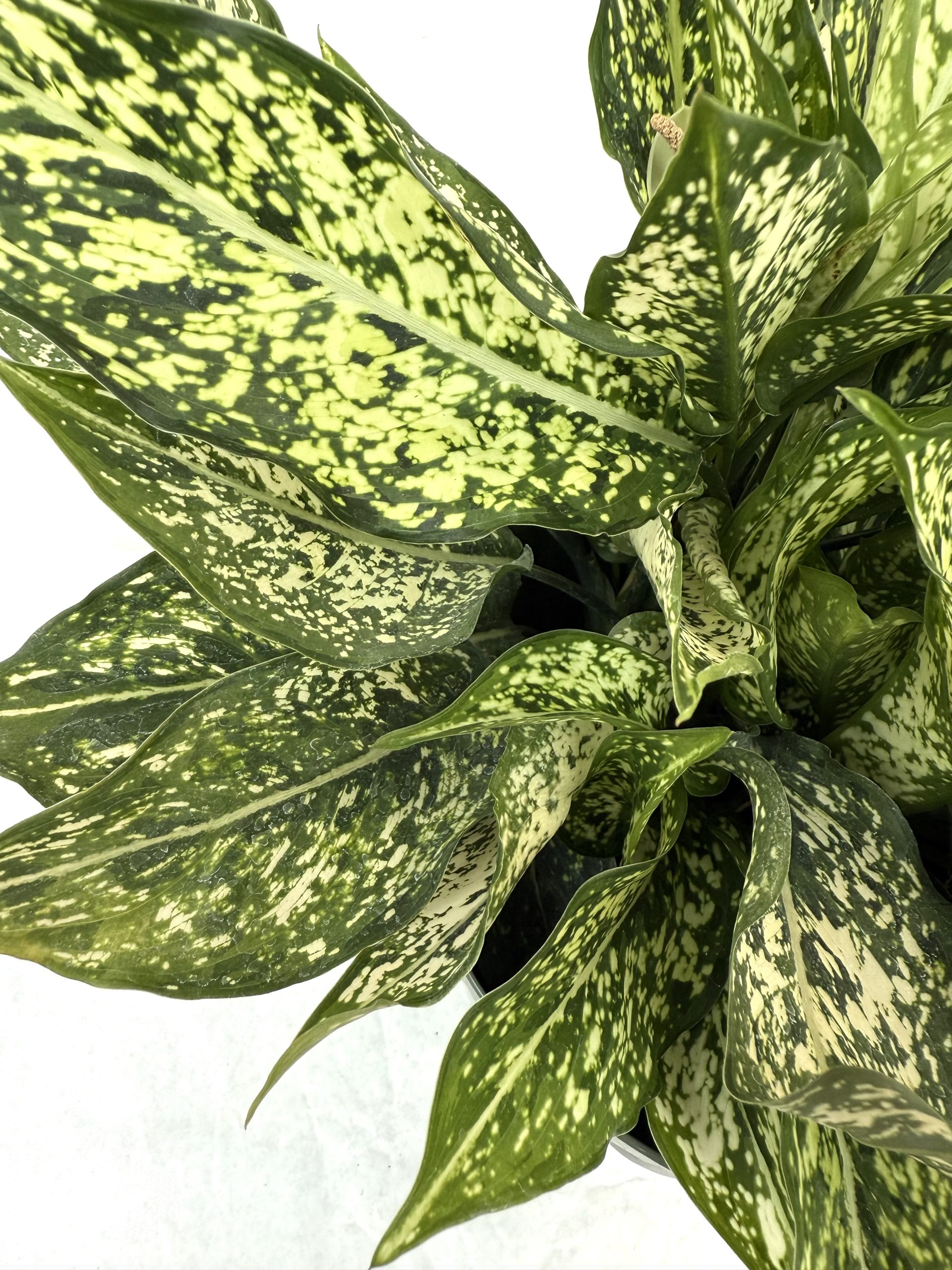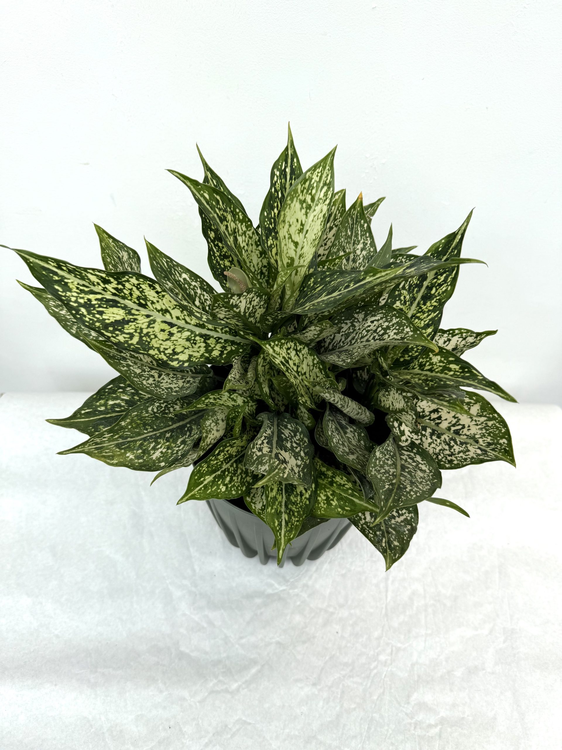 Красивый сорт аглаонемы с пестрыми бело зелеными листьями. Зелень густая.высота 40см.