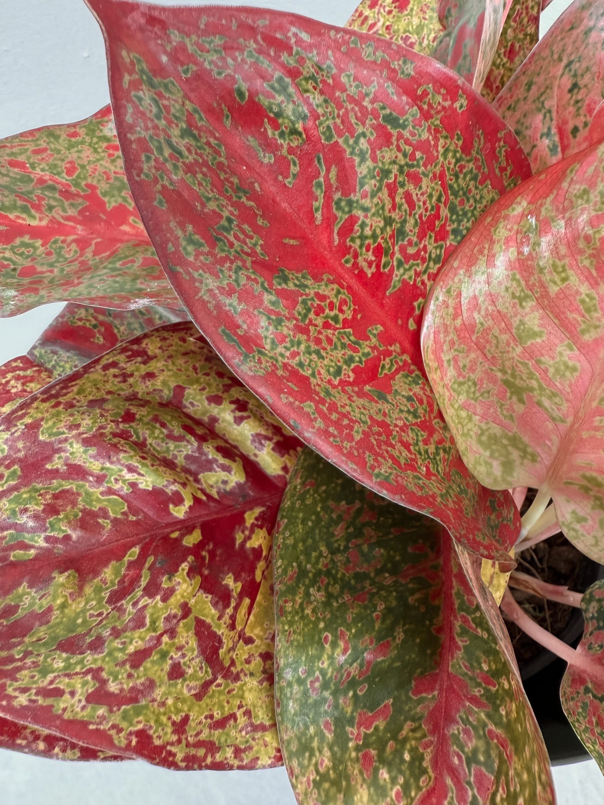 Прекрасный сорт аглаонемы с «меланжевыми» красно-зелеными листьями.
